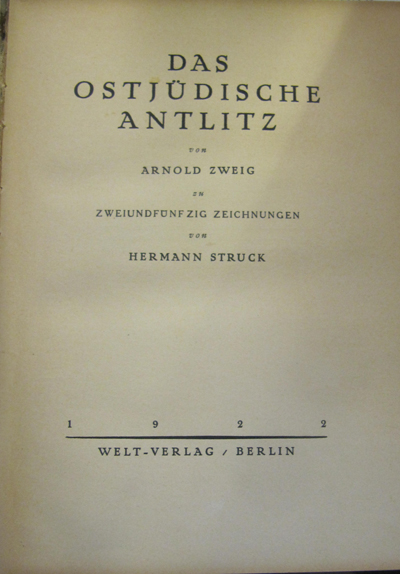 Das Ost Júdische Antlitz Von Arnold Zweig/Herman Struck. Berlin 1922. Illustrate covers worn & loose, lacking spine. Together with a signed print by Struck.