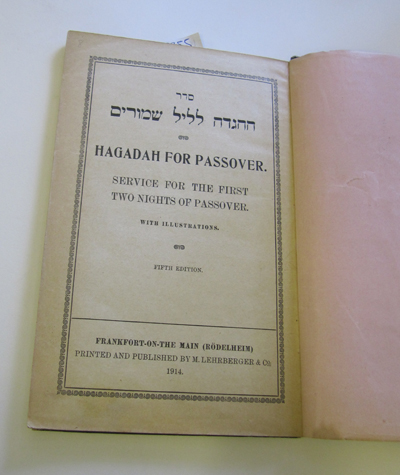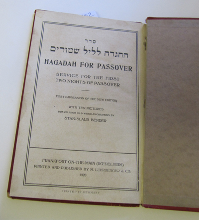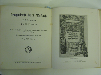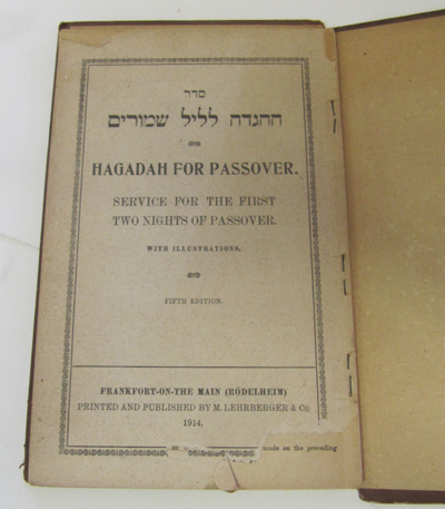 Dr.M.Lehmann: Hagadah Shel Pesach. Frankfurt, Verlag Kauffman 1918 Hebrew/German, Plain libary binding. Slightly pulled. End paper torn. £45
