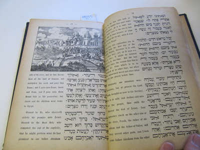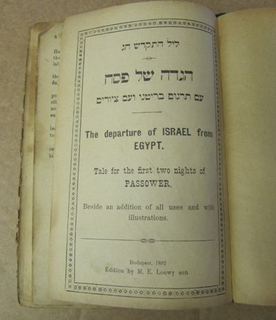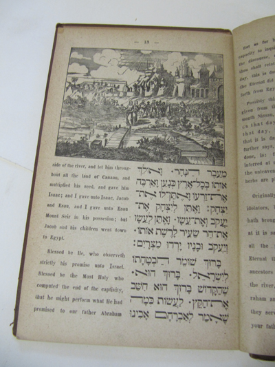 Haggadah Shel Peache, The Departure of Israel from Israel. Tale for the First Two Nights of Passover. Budapest 1892. English / Hebrew text. Binding worn with edge loss. Pages loose with spotting.