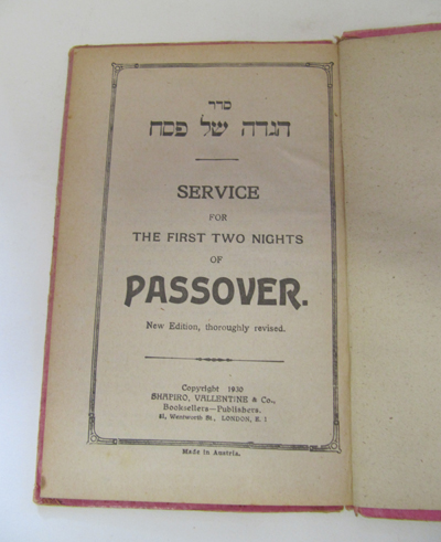 The Seder Service, Hagadah for Passover. Vienna 1922. Scuffed & worn. Tape repair to spine. £12.50