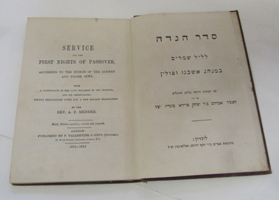 Hagadah for Passover. With commentary. Reprinted H.Pordes, London 1954. Hardback. Scuffed dustjacket.