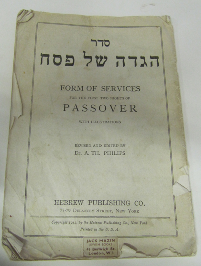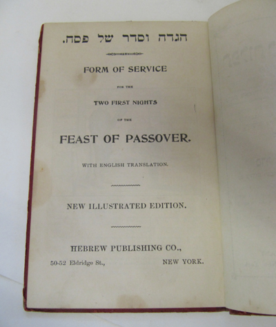 Forms of Service for the First Two Nights of Passover. With illustrations. Worn paperback. New York 1912.