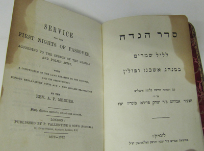 Service for the First Nights of Passover. 6th edit. London 1912. Leather binding. Edge stains.