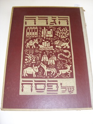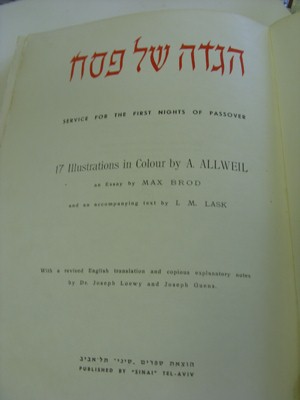 Ornate binding Haggadah with tipped in colour plates by A.Allweil. Text by I.M.Lask with essay by Max Brod. Pub by Simai, Tel Aviv 1963. Good condition