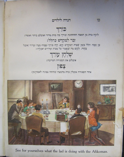 Monolit press Passover Haggadah pub Warsaw 1934. Hebrew/English text. Worn condition, some wine stains. good condition for this Haggadah