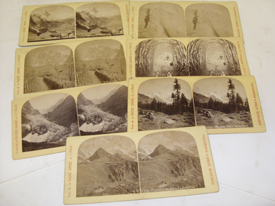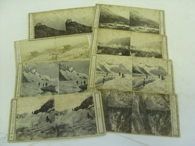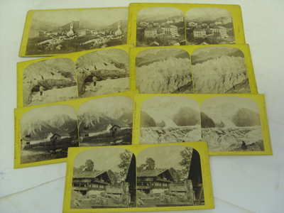 A.Braun, A Dornach (Haut-Rhin) Suisse Sterocards Inc Chamounix, Oberland Bernois, Ragaz, Grisons, Saltzburg. Early cards. Circ 1860's. Spotted. Interesting collection.