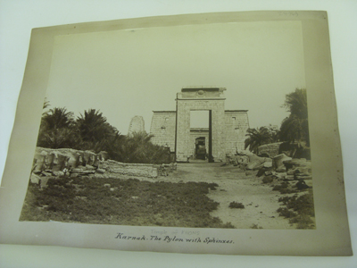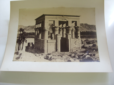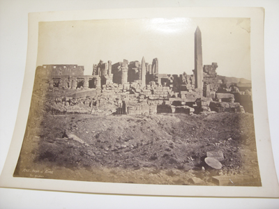 Clear image of Temple at (Thebes) 25x19cm. Mounted of card. Circ 1890