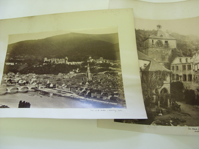 2, Clear images of Heidelberg & the castle. Circ 1890. Mounted on card. The second image showing the clock tower. 27x20cm