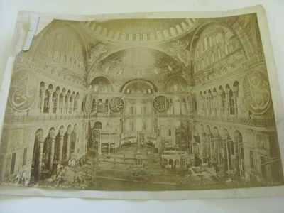 Sebah Photograph : Interior St.Sophia, Constantinople SL.Faded image on card, Scuffed. Circ 1890. 35x24cm