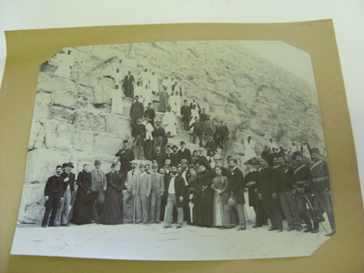 Group of travellers at the great pryamid, Cairo. Circ 1900 image 25x19cm