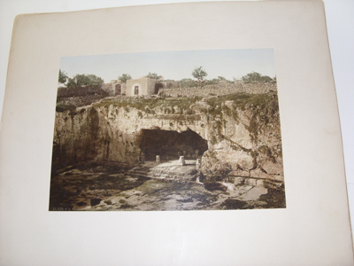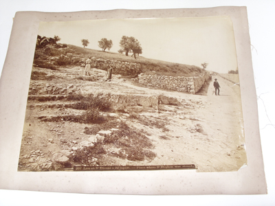 Bonfils : Place where St.Stephen was stones, SL. Scuffed image Circ 1890. 28x22cm. Backed with faded image, Grotte Nativity by Bonfils.