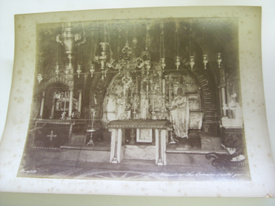 Bonfils photograph on the Armenian Chapel on the site of calvary, #270. 27x21cm. Edge spotting. Circ 1890