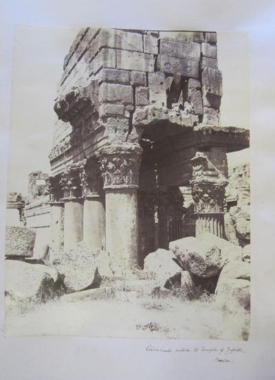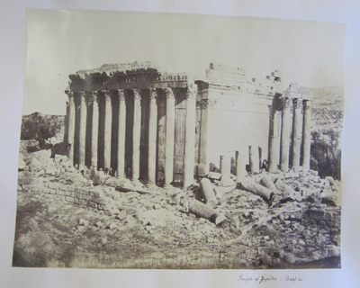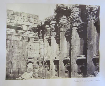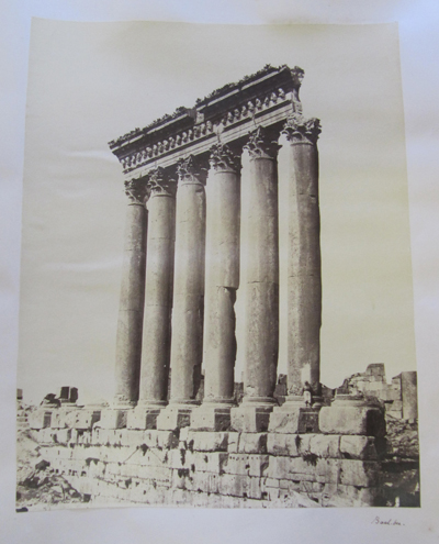 Temple, Baalbec Albumen Print 30x23 Mounted on Card. Circ 1870.