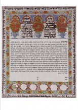 Based on a traditional 19th century Ketubah from Herat, Afghanistan. The five arches at the top are an omen for good luck. The Ketubah text is surrounded by a range of traditional blessings for the bride and bridegroom - one for each letter of the Hebrew alphabet.